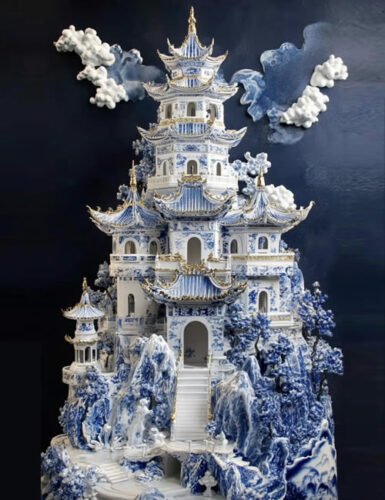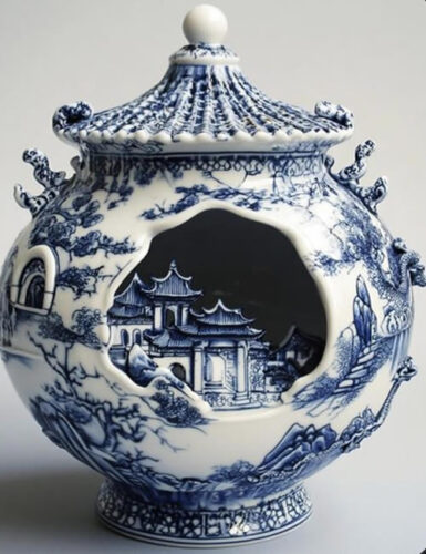 I found this piece, too. Isn’t it an amazing piece of porcelain cut work and sculpture? I found things that were similar.