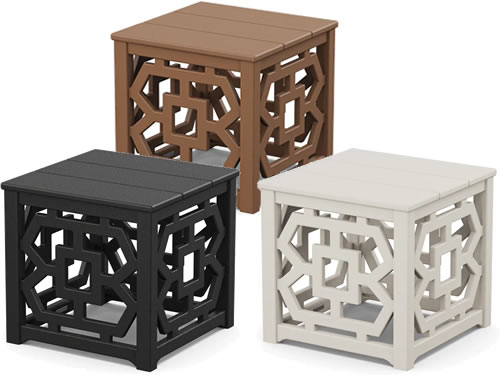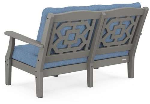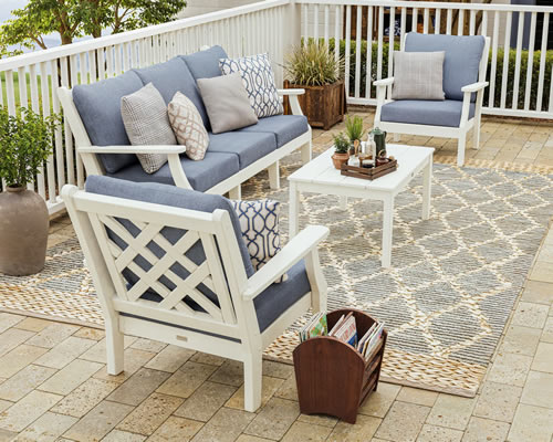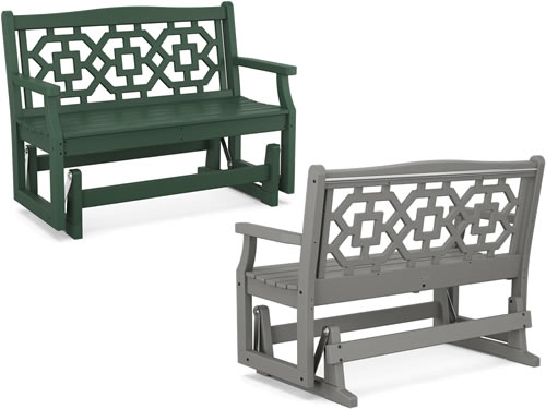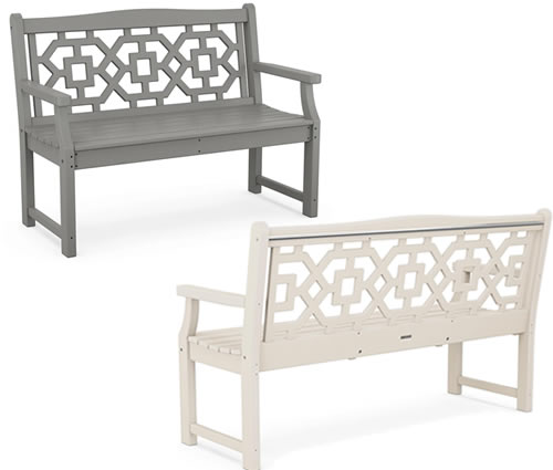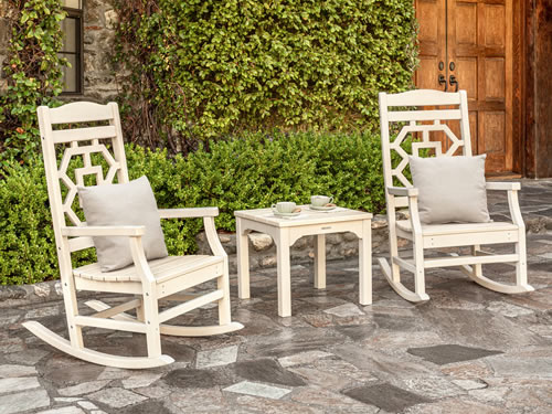 Polywood has collaborated with Martha Stewart on two collections. The Chinoiserie Collection incorporates the lattice pattern that is one of the components that characterizes Chinoiserie. It is the same motif that is on the edges of some of my Blue Willow china and the pattern in the fence in others.