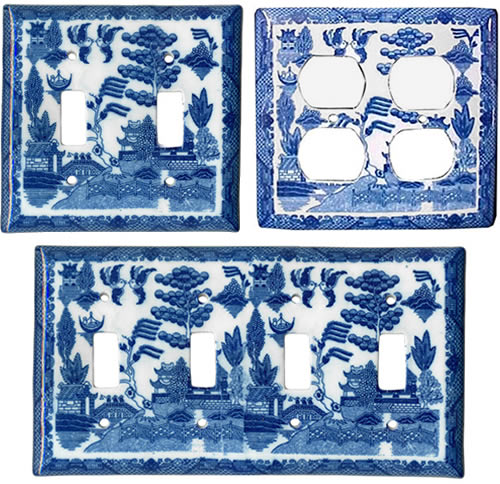 Another option is to wallpaper or decoupage your cover plates with Blue Willow paper.